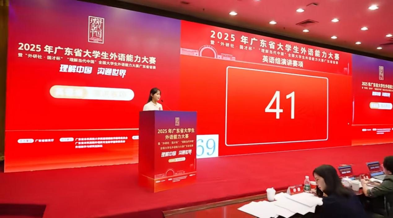 日前,由广东省教育厅主办的2025年“外研社·国才杯”“理解当代中国”全国大学生外语能力大赛广东省省赛落下帷幕。我院2023级法学专业邝乐瑶同学代表暨南大学参赛,同时荣获演讲赛项银奖与综合能力赛项铜奖。