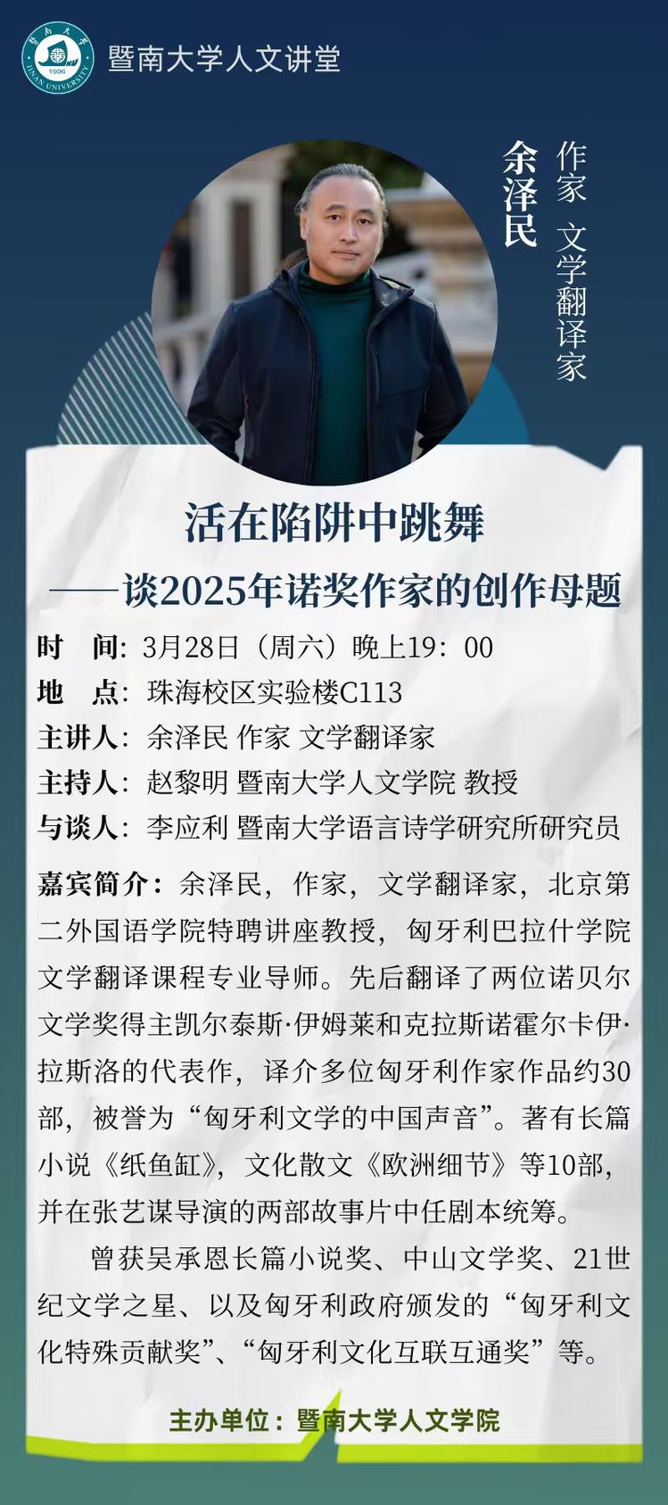 【人文讲堂 • 预告 】《活在陷阱中跳舞——谈2025年诺奖作家的创作母题》